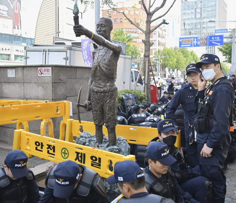 一方、市民団体は移動先を告げないまま集会終了後に像を移動させると警察などに通告し、徴用工像を警備している警官隊の撤収を要請。警察は受け入れず、にらみ合いが続いたが、衝突はなく解散した。